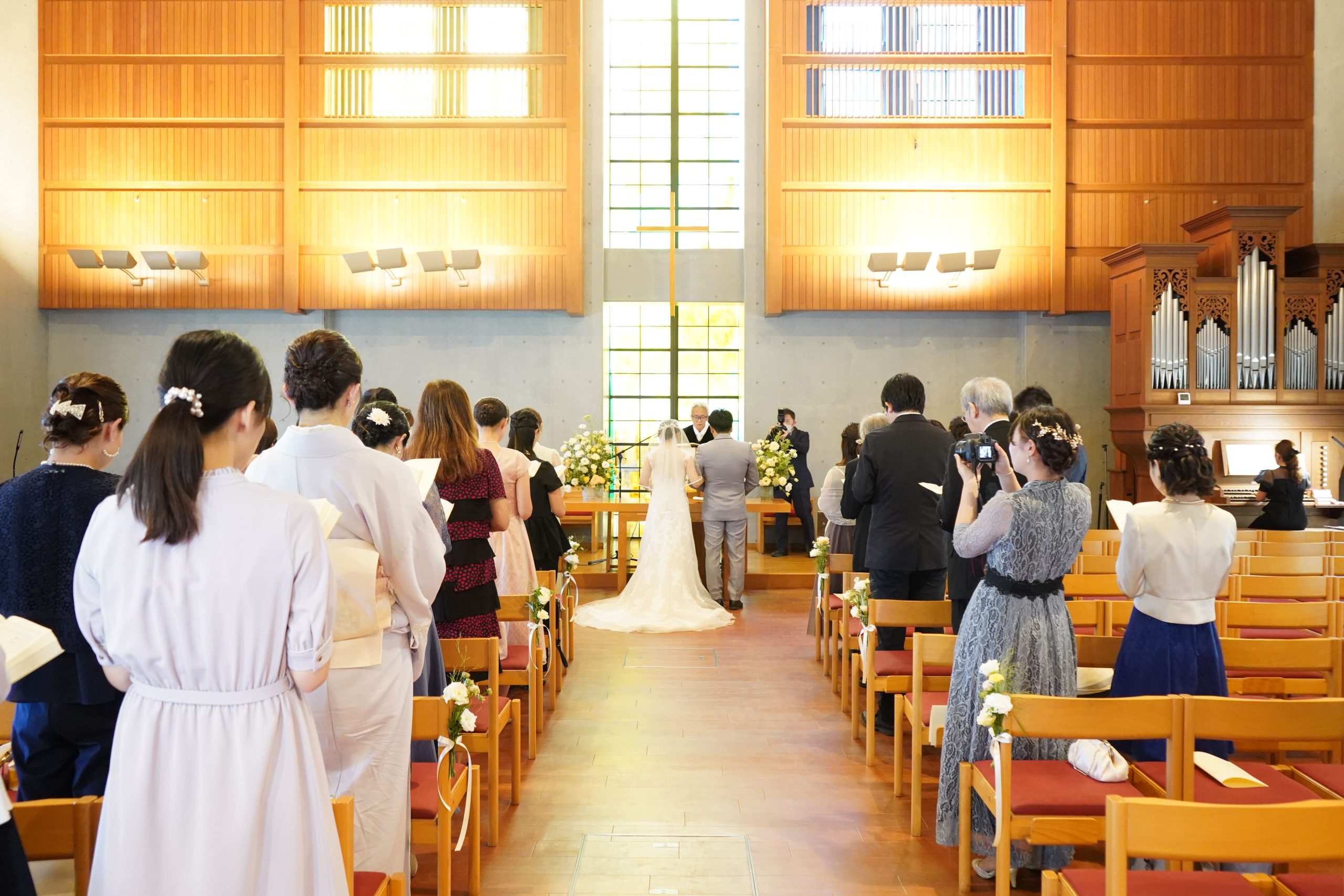 本学はプロテスタントのキリスト教信仰を建学の精神としており、礼拝に準ずる儀式として結婚式を行います。