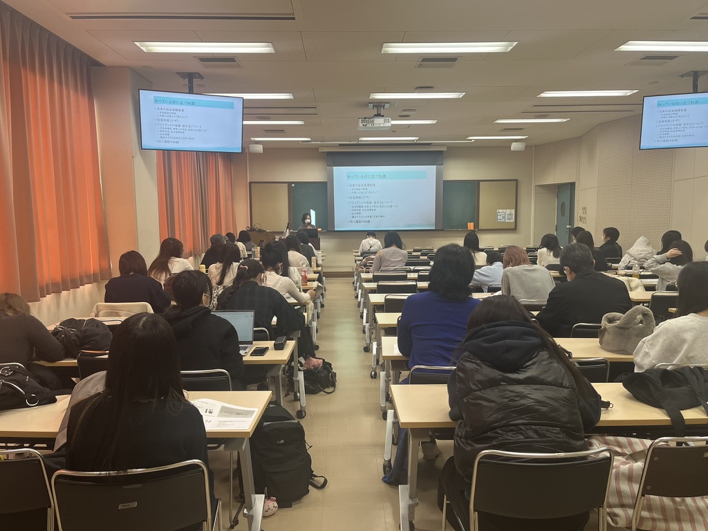 記念すべき第1回は12月8日(木)に「コミュニティ通訳論(基礎)」の授業で、NPO法人MICかながわで医療通訳ボランティアとして活動されている榊原圭美さんをお招きし、「コミュニティ通訳を通して学んでいること」というテーマでお話をうかがいました。