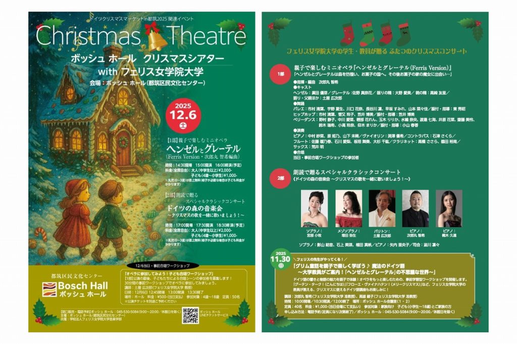 12月6日(土)、ボッシュ ホール(横浜市都筑区民文化センター)にて「ボッシュ ホール クリスマスシアター withフェリス女学院大学」が開催されました。出演したのは、すべてフェリス女学院大学の学生と教員です。