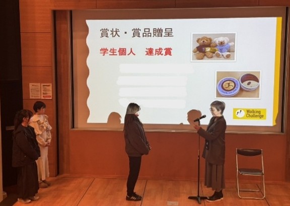12月12日にキダーホールで表彰式を行い、健康増進に推奨されている1日平均8000歩を達成した方に、学長より表彰状と心温まるメッセージが送られました。