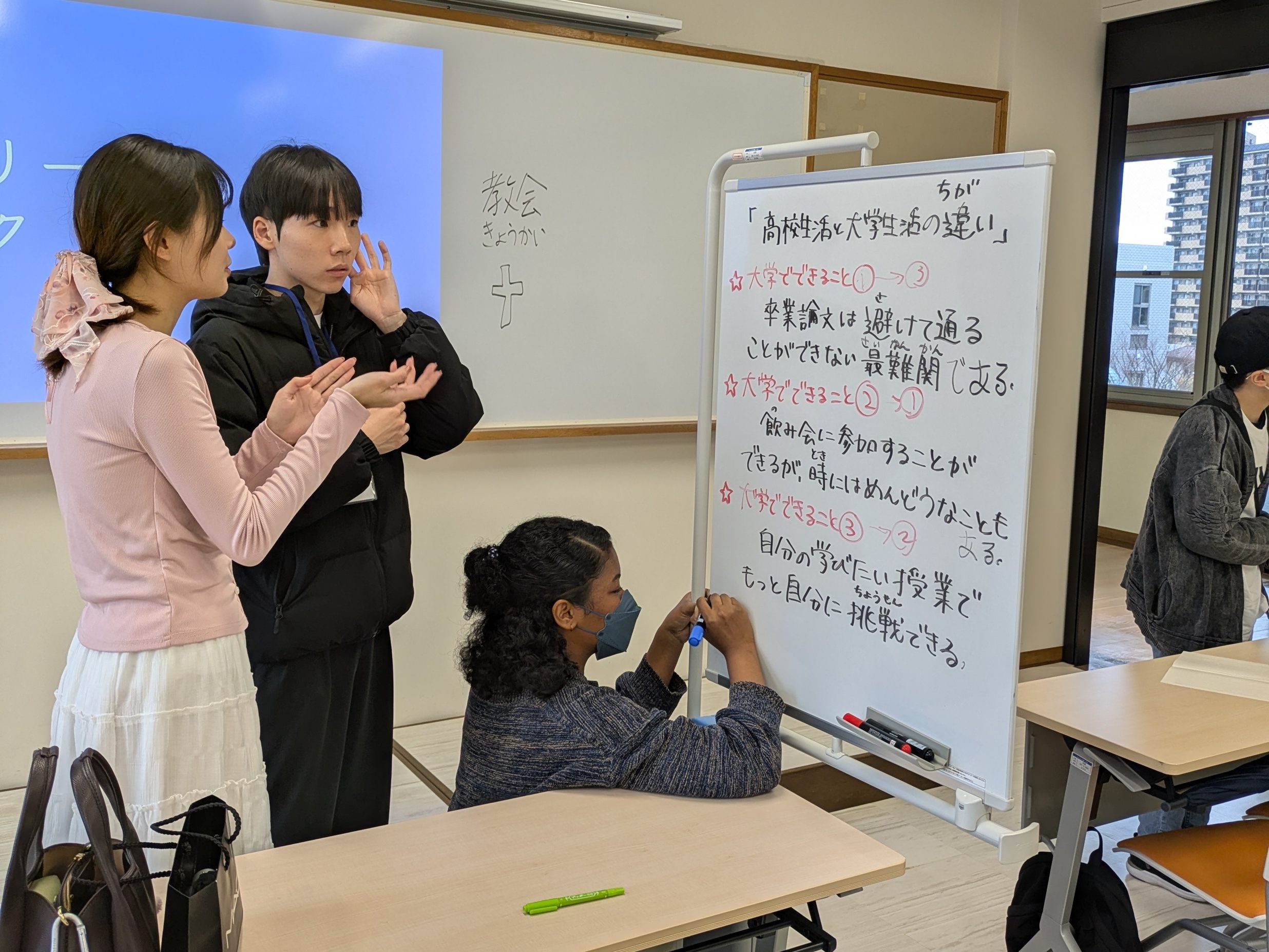 12月14日(日)、オープンキャンパスと同日に、日本語学校に在籍する留学生や外国ルーツを持つ高校生を対象とした特別企画を開催しました。当日は、多様な文化的背景を持つ参加者が本学キャンパスに集い、フェリス女学院大学の国際色豊かな学修環境や学生生活を体感する一日となりました。