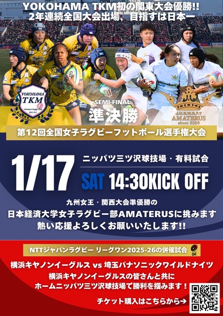 1月4日に、女子ラグビーチームYOKOHAMA TKM様の試合にて応援パフォーマンスをさせていただきました。