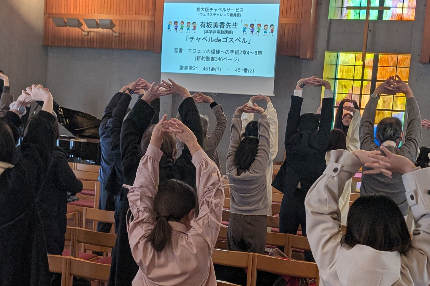 2026年1月22日、緑園キャンパス・チャペルにて、「チャペルdeゴスペル~歌でつながるフェリスの輪~」を実施しました。本企画は、キリスト教センターと演奏会室の職員有志が協働して行ったコラボレーション企画です。